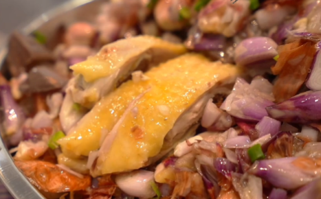✅特色:红葱油鸡选用老板自家农庄散养的阉鸡,葱头油要用红葱头,将葱头削去头尾,拍碎,加鲜榨花生油、盐一起腌制,最后在农家鸡上铺上满满一层的葱头油,撒上葱花。鸡肉质紧实、嫩滑、鲜甜,加上红葱头油后鸡肉吃起来更加美味。