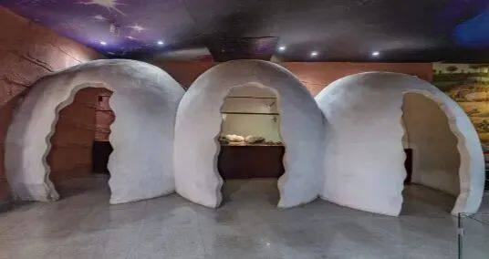 进入展厅内,模型反映了古人类生活的场景还有日常所用过其器皿。可见人类已经会使用火源和生产生活物料。