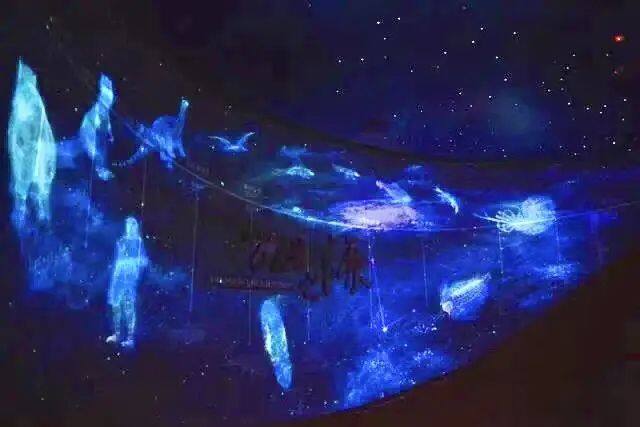 进入展厅,犹如进入了海洋馆,各种海洋生物在面前自由穿梭。各种海洋生物,相生在空间之中。