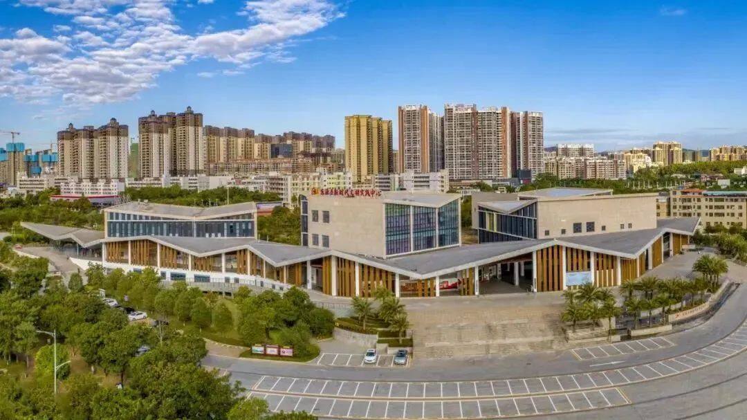 河源市图书馆位于河源市源城区客家文化公园西侧,占地面积超3万平方米,建筑面积约2.7万平方米,在公园中轴线中心湖北岸,设计师按照客家五凤楼的造型,赋予了极具客家特色的外貌。