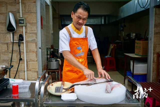湖鲜上岸不久,附近龙凤酒楼的厨师开始片鱼。 李娇 摄