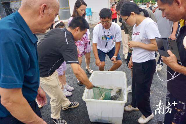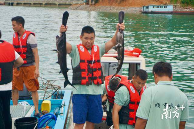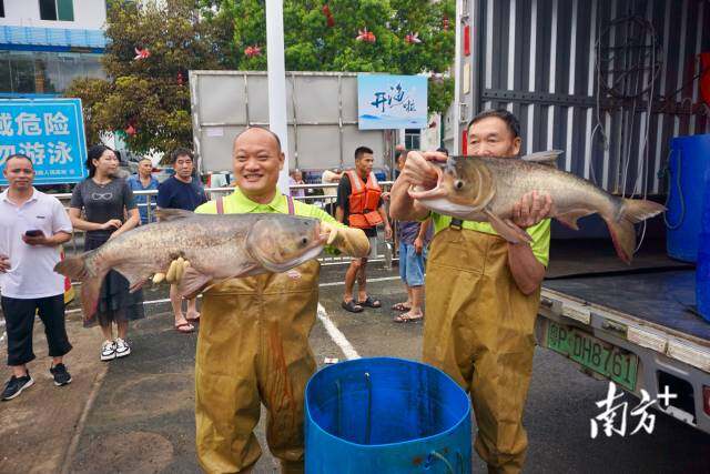 7月1日下午5时许,河源市新港镇客运码头,几十艘船只渐驶渐近,岸上人翘首以盼。随着满载鱼获的小船靠岸,不少渔民抱举起今日“战果”,码头一时间人声鼎沸。长丰水产张汉东抱着一条大黑皖一路小跑,直至将其放进运输车的水箱里,“60多公斤重,不一口气根本抬不下来”。