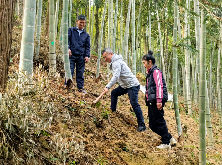 初到上陵镇,江敬艳看到当地竹产业传统落后、产量不稳、竞争力弱。凭借专业判断,他深知该地纬度、土层与水资源条件等适宜毛竹生长。为打破困局,把竹产业发展成为富民增收的好产业,他带领团队深入调研,为当地竹产业“量身定制”了县、镇、村发展规划,绘就产业发展蓝图。围绕“全竹利用”“全链开发”发展竹产业,逐步构建起“主攻一产夯基础、带动二产提效益、拓展三产创品牌”的新格局。